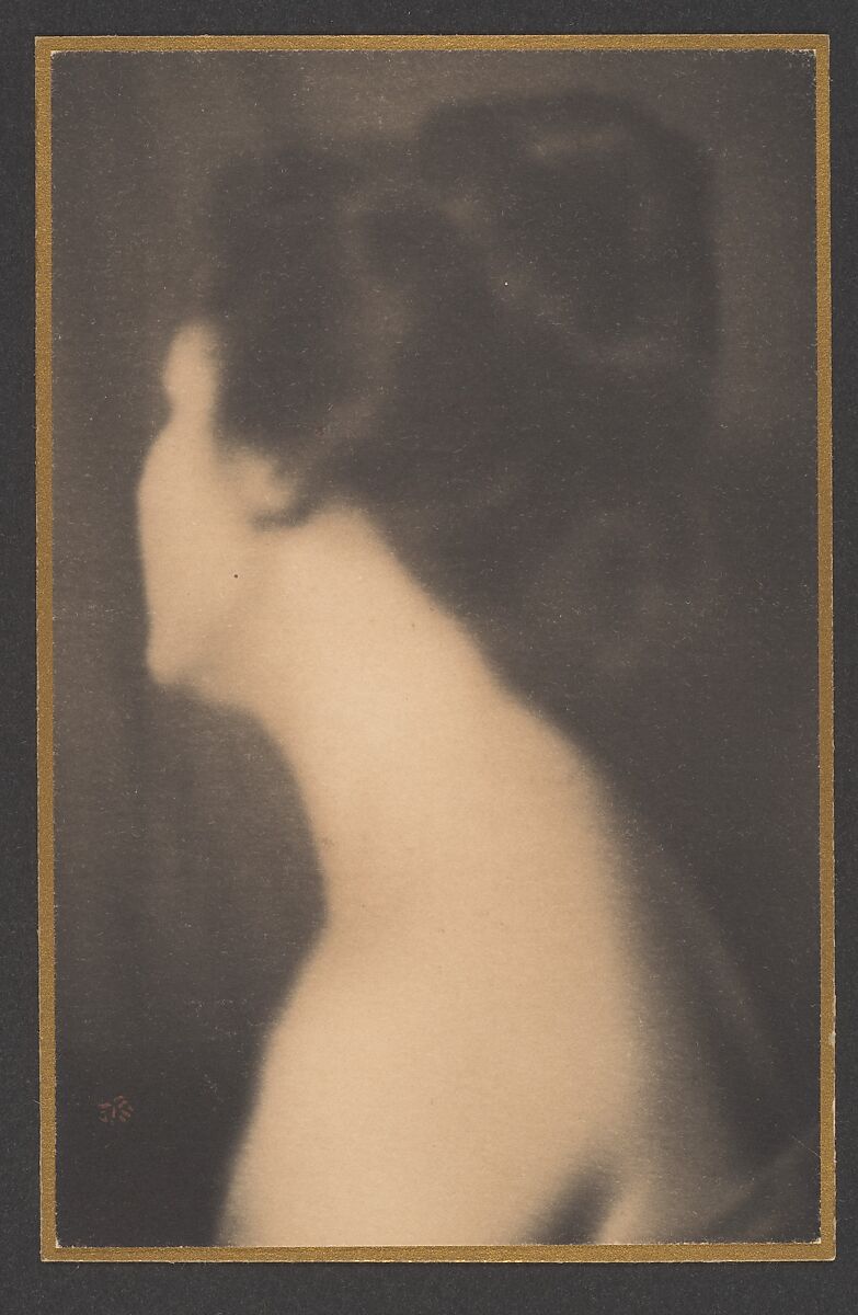 Lawyer turned amateur photographer, Keiley was involved in establishing the Photo-Secession, which advocated that photography was a fine art. In the late 1890s, Keiley collaborated with Alfred Stieglitz, the most influential member of the group, to improve a glycerine-developed platinum printing process that made each print unique and emphasized its handmade nature. In this exquisitely crafted figure study, the velvety background provides a contrast to the model’s luminous skin, accentuating the graceful curve of her neck and the soft lines of her obscured profile.