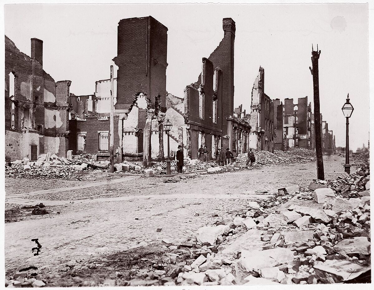 Very little is known of the early career of Thomas C. Roche. During the Civil War he worked for E. & H. T. Anthony Company, New York, publishers of cartes-de-visite and stereoscopic views and distributors of photographic supplies. In early April 1865, near the war's end, Roche received special orders from Anthony to work for General Montgomery Meigs. As quartermaster of the Union Army, Meigs was responsible for the procurement and transportation of everything from bootlaces to artillery. He was also an amateur photographer and recognized the military usefulness of documentary photography. This view shows the ruins of Richmond, Virginia, the capital of the Confederacy, soon after Jefferson Davis and his Confederate cabinet evacuated the city on April 3, 1865. Fires intentionally set by fleeing Confederates and looters destroyed much of the city otherwise untouched by the Union Army. On April 9, General Robert E. Lee surrendered to General Ulysses S. Grant, effectively putting an end to the Confederacy and then, a few weeks later, the Civil War.