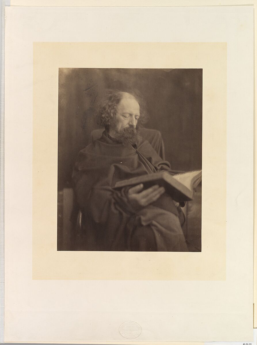 Cameron’s friendship and determination knew no bounds—indeed, her kindness could be overbearing (as when she presented Tennyson with thirty rolls of wallpaper to replace the wallpaper she didn’t like in his house). Tennyson, who jokingly referred to Cameron’s models as “victims,” resisted her appeals to sit for his portrait but ultimately succumbed.
