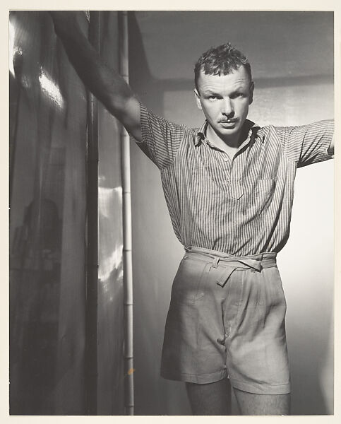 Lynes took his first photographs as a young artist living in New York and Paris in the 1920s. He maintained an interest in the male figure throughout his career and was part of a close-knit group of artists, including Paul Cadmus, Jared French, Margaret French, and George Tooker, who explored sexuality and the body in an age that increasingly favored abstraction. The subject of this photograph, Jared French, was an important painter in the world of gay New York artists. French also serves as the subject of Luigi Lucioni’s portrait as well as the model for Paul Cadmus’s Gilding the Acrobats, both in the Met collection.