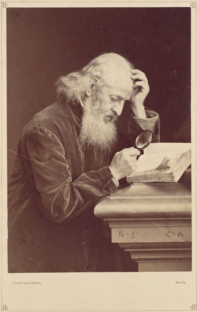 [Bearded Man with Magnifying Glass Examining a Manuscript]