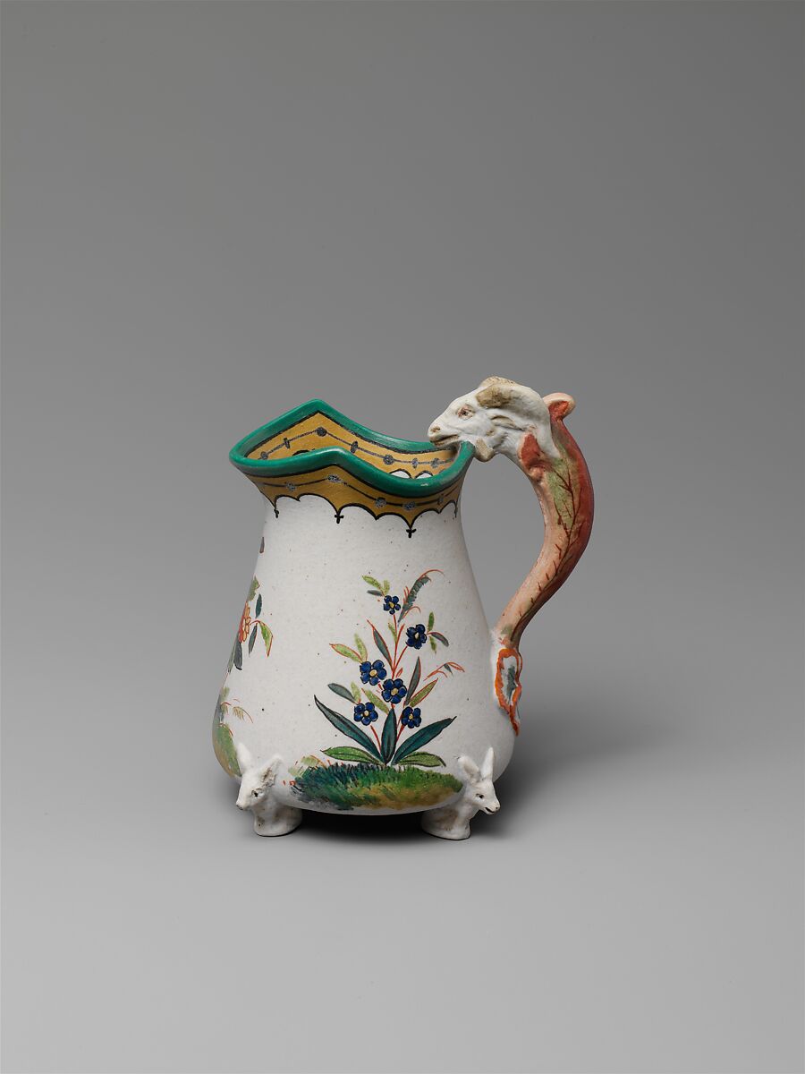 Made as a prototype for a porcelain service exhibited at the 1876 Philadelphia Centennial Exhibition, this tea set depicts troubling imagery on the finials of the teapot and sugar bowl in the form of heads of an Asian and a Black man. While designer Karl Muller’s intent was undoubtedly to present well-known iconography for tea and sugar—a goat is also depicted on the handle of the creamer—the representations reveal the pervasiveness of racist thought in 19th-century America. The Black head also underscores how the commodity of sugar was inextricably linked to the exploitation of enslaved labor, especially in the Atlantic World.