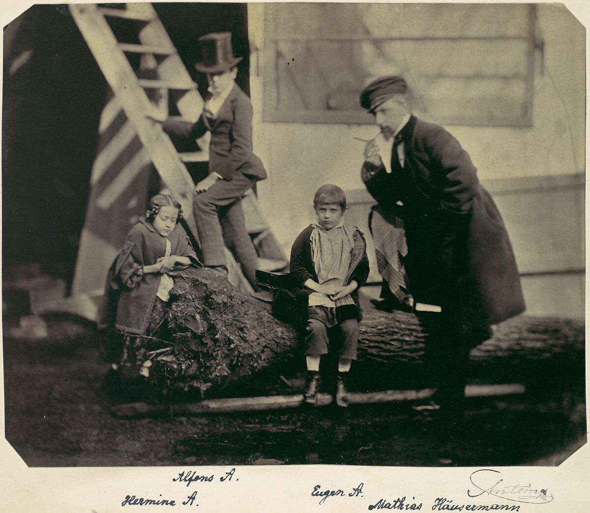 - Title: [Hermine, Alfons and Eugen Antoine and Mathias Häusermann on a fallen tree]