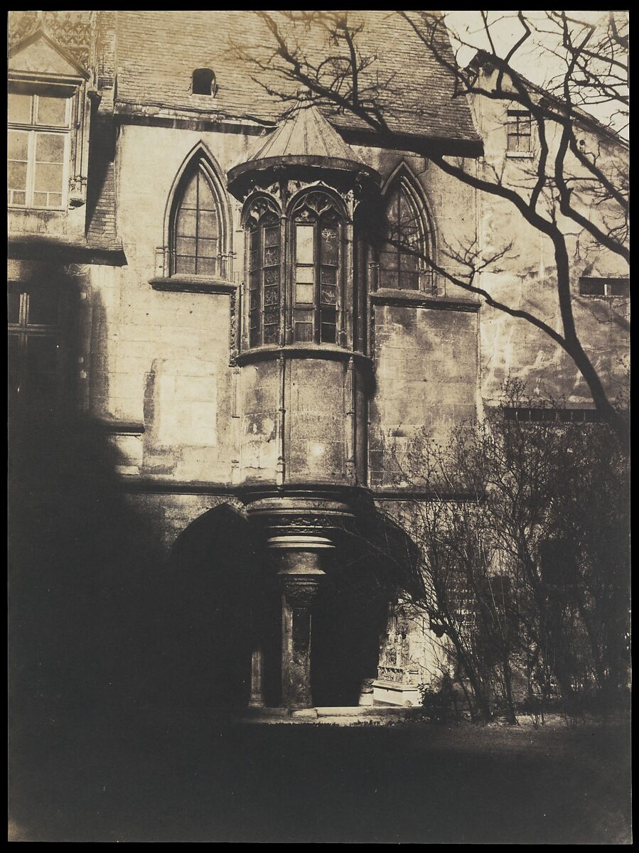 Le Gray, the most important early French photographer, is best known for his extremely popular and widely distributed seascapes of the mid- to late 1850s. He was also a gifted photographer of architecture and was one of five photographers commissioned by the French government in 1851 to document the nation's ancient and medieval monuments. Although Le Gray made this picture at roughly that time, it seems to have been motivated by his own interest in one of the best preserved Gothic structures in Paris, the Hôtel de Cluny, which had been made into a museum of medieval art less than a decade earlier. That passion for the Gothic past, much in vogue at mid-century, also found expression in Le Gray's pictorial strategy--framing the late Gothic entrance with mysteriously poetic swaths of deep shadow and a delicate tracery of branches.
