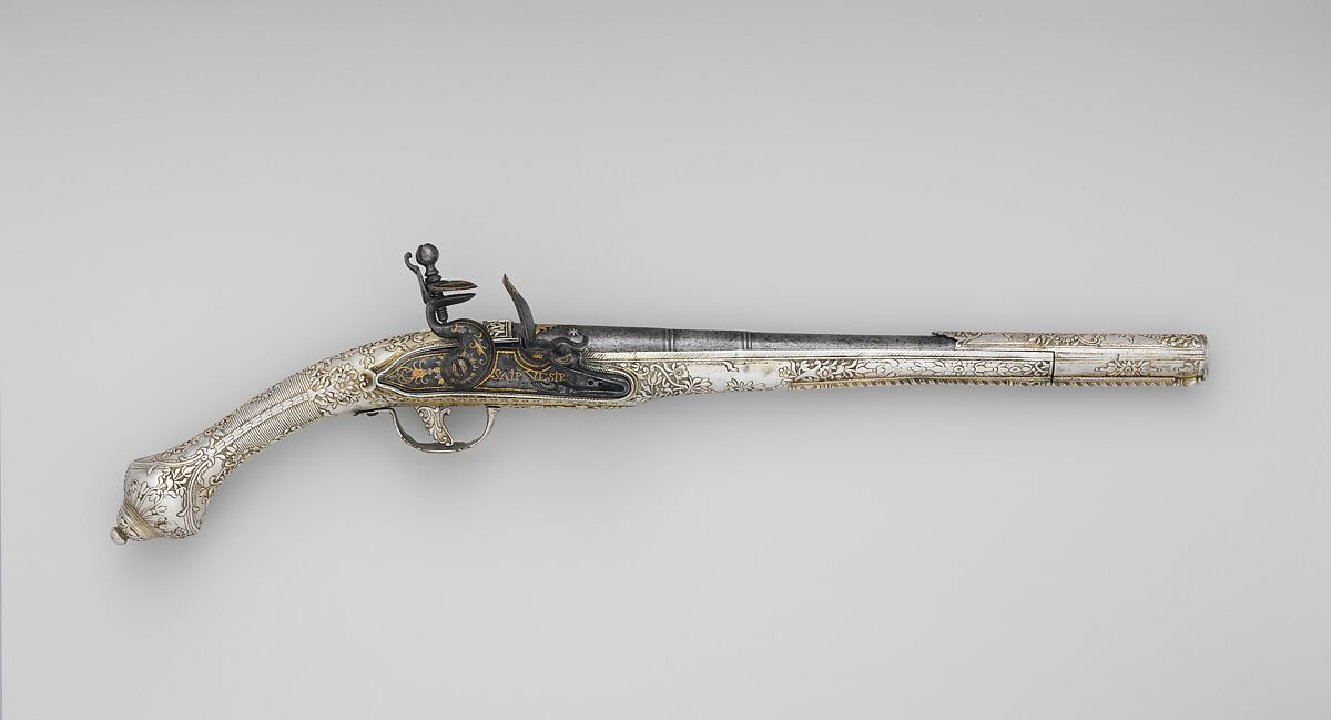 - Dimensions: L. 20 1/2 in. (57.1 cm); L. of barrel 13 1/2 in. (34.3 cm); L. of lock 4 5/8 in. (11.8 cm); Cal. .65 in. (16.5 mm); Wt. 2 lb. 12 oz. (1304.1 g)