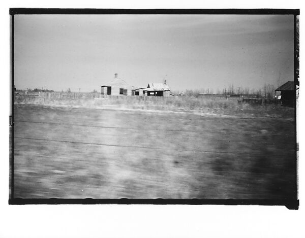 - Title: [Wooden House and Adjacent Farm Building in Field, From Moving Automobile, Louisiana]