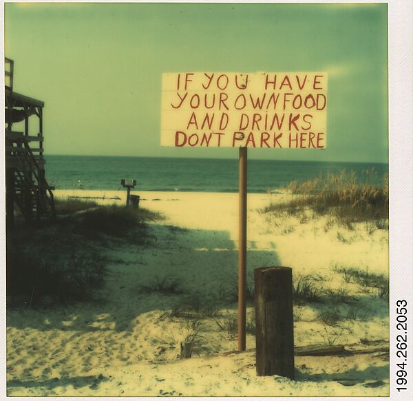 Evans was in poor health when he began to work with the Polaroid SX-70 in 1973; he was attracted to the camera's small, elegant design and the instant color prints it generated that required no tedious lab or darkroom work. Like the developing Polaroid print itself, with its miraculous and immediate image, Evans came to life and worked feverishly with the new camera. At the age of seventy, he returned to many of his lifelong themes, including vernacular architecture, domestic interiors, portraiture, and roadside signage.