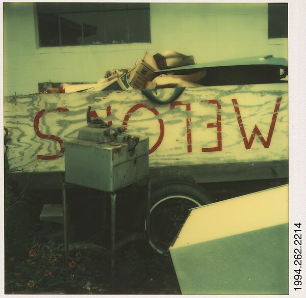 Evans was in poor health when he began to work with the Polaroid SX-70 in 1973; he was attracted to the camera's small, elegant design and the instant color prints it generated that required no tedious lab or darkroom work. Like the developing Polaroid print itself, with its miraculous and immediate image, Evans came to life and worked feverishly with the new camera. At the age of seventy, he returned to many of his lifelong themes, including vernacular architecture, domestic interiors, portraiture, and roadside signage.