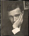 [Walker Evans, Chin in Hand, in Front of Resettlement Administration Poster]