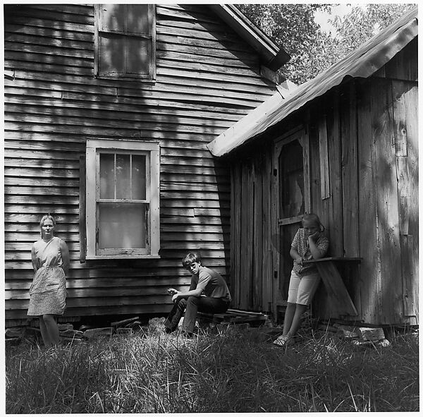 [Woman Leaning Against House Façade, Boy Seated, and Girl Leaning Against Shed]