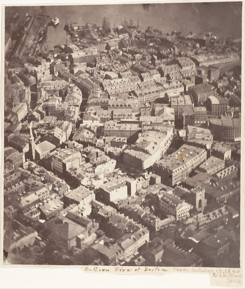 Best known for his photographs of Boston after the devasting fire of 1872, Black launched his solo career in 1860 with the production of a series of aerial photographs taken from Samuel King's hot-air balloon the Queen of the Air. Black's views of Boston were the first aerial photographs made in America; two years earlier the Frenchman Nadar had made history making similar views of Paris.