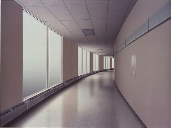 The eerily lit interiors represented by Kalpakjian do not exist in three-dimensional reality. Devoid of human presence, these are virtual spaces designed with the most sophisticated architectural computer-aided design programs available. Rather than using this imaging software to produce a simulated view of what a proposed building might look like, Kalpakjian uses it to design fictitious architecture solely for the purpose of creating the pictures he has imagined.