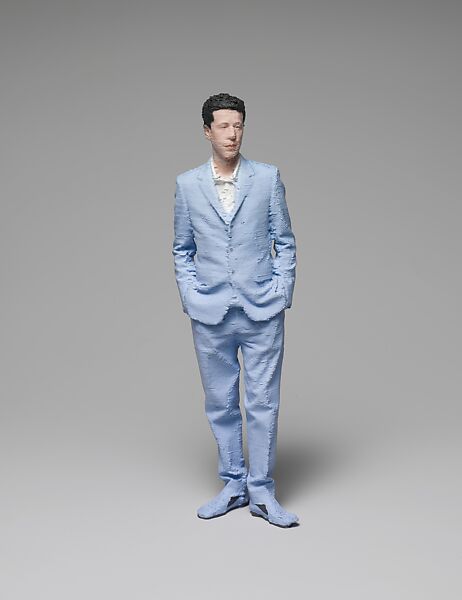 Sander created these Lilliputian figures by first recording her subjects in the round with sixteen digital cameras, then feeding the images into a machine designed for making models and prototypes. From this photographic matrix, the machine sprayed layers of plastic according to the shape of the person at 1:10 scale, which was then painted with an airbrush. The results are uncannily accurate portrayals of individual pose and gesture using the most modern of means-pocket doubles that refer obliquely to a possible future of clones and replicas.