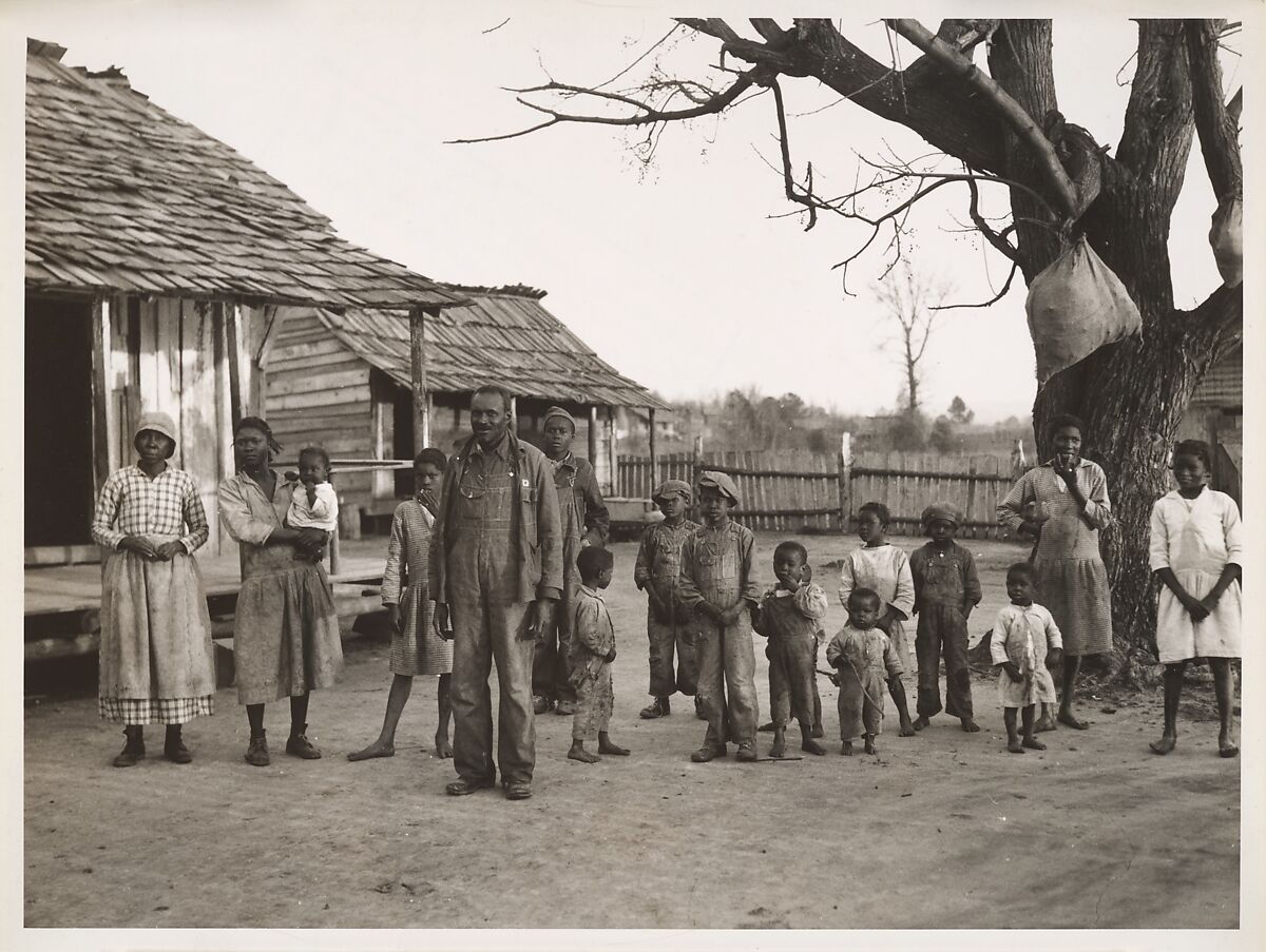 As one of the first three photographers hired by Roy Stryker at the Farm Security Administration, Rothstein became intimately familiar with the plight of rural families during the Depression. In this photograph, he deftly communicates the individual personalities of each family member despite the formality of the group pose. The image was reproduced in Richard Wright's photo-text book, 12 Million Black Voices: A Folk History of the Negro in the United States (1941), in which the acclaimed author of Native Son and Black Boy combined New Deal photographs with his words to trace African-American history from slavery, through emancipation, sharecropping, and northern migration, to contemporary joblessness and racial prejudice.