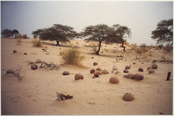 The artist is peripatetic, rooted in the materials and cultural traditions of Mexico but finding inspiration, collaboration, and opportunity around the world. In recent years, he has become particularly interested in ceramics in part because the hand-thrown pot is common to all cultures; last year the artist traveled to Mali to explore the production, uses, and meaning of ceramics in that culture. His trip took him to the legendarily remote city of Timbuktu on the border of the Sahara, an ancient trading post that took gold from West Africa to Europe. Little has changed in Timbuktu over the centuries, except that the Sahara increasingly encroaches on the city. Orozco stumbled on an old but still active cemetery where he found particular resonance in the terra-cotta grave markers scattered in the landscape as though he himself had created a site-specific installation. With his characteristically unfailing eye for color and form, the artist finds a vantage point from which the spherical pots, placed at the head of graves as markers and as receptacles for food and water offerings, appear as part of the natural landscape.