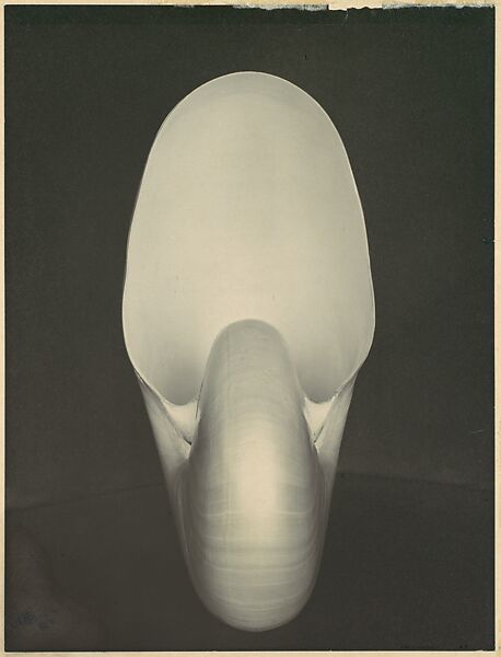 Like their painter counterparts, many photographers experimented with abstraction in the 1920s and 1930s, exploring relations of form, tonality, and space. Here, Weston isolates a nautilus shell against a solid black ground, creating a study of curves, subtle shadows, and contrasts between light and dark. As in many of his close-ups of natural forms, the nautilus appears both recognizable and yet strangely unfamiliar. Unlike the rigorously nonrepresentational compositions of photographers like László Moholy-Nagy, Weston’s abstractions always remained grounded in objects from the real world; as he wrote in 1930, "To see the Thing Itself is essential."