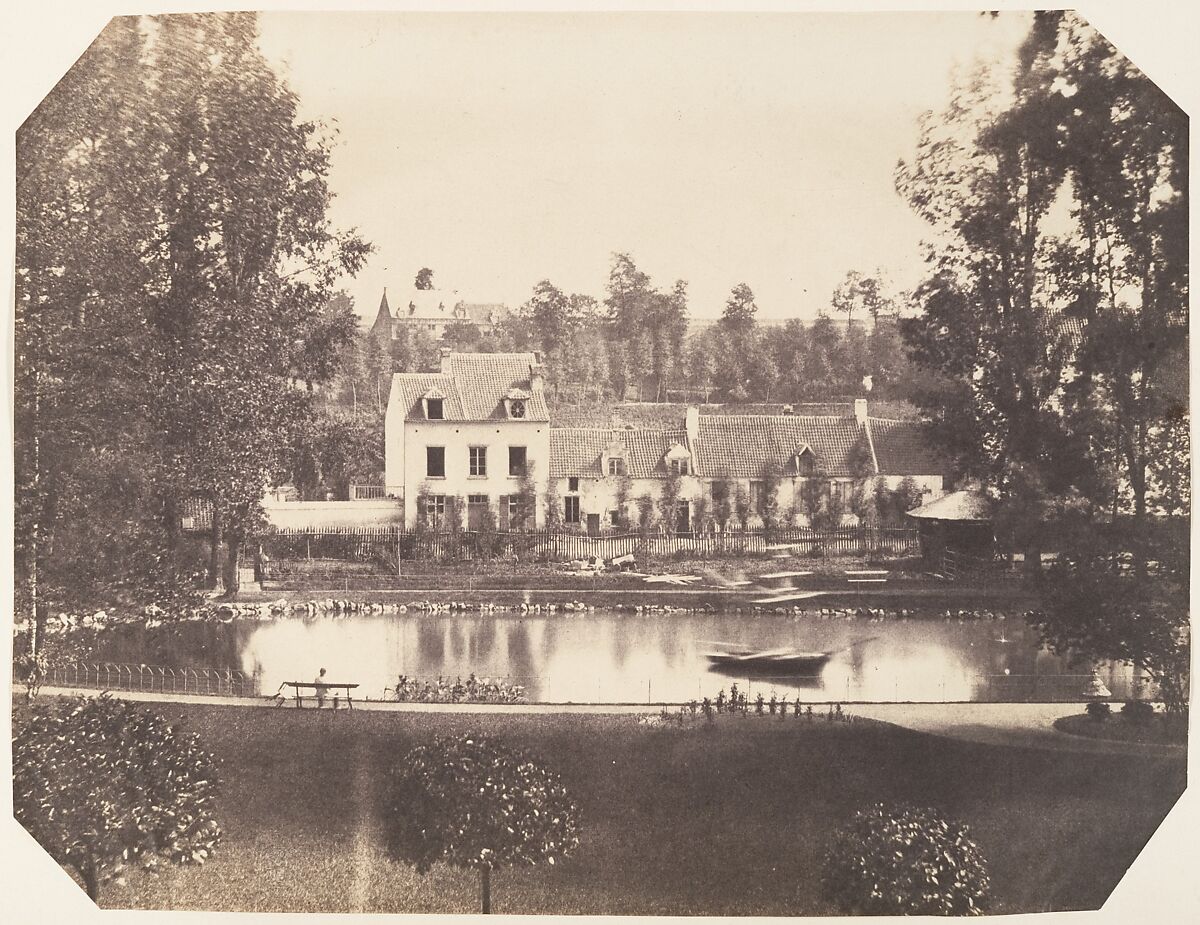 A judge at the magistrate's court in Lille, France, Dubois de Nehaut left the bench after the rise to power of Napoleon III. He then settled in Brussels in 1851 and pursued his interest in photography. This photograph is from a unique album of thirty-two plates that includes the artist's droll comments about his subjects, the qualities of the prints, and the difficulties he encountered while making them. It is entirely possible that this view of the newly opened zoo in Brussels does not actually record a single exotic bird, reptile, or quadruped-standard fare at such theme parks even in the mid-nineteenth century. It does, however, document the presence of a mammal: a human in the left foreground seated on the sole park bench-a convenient stand-in for the artist contemplating the same enchanting scene.