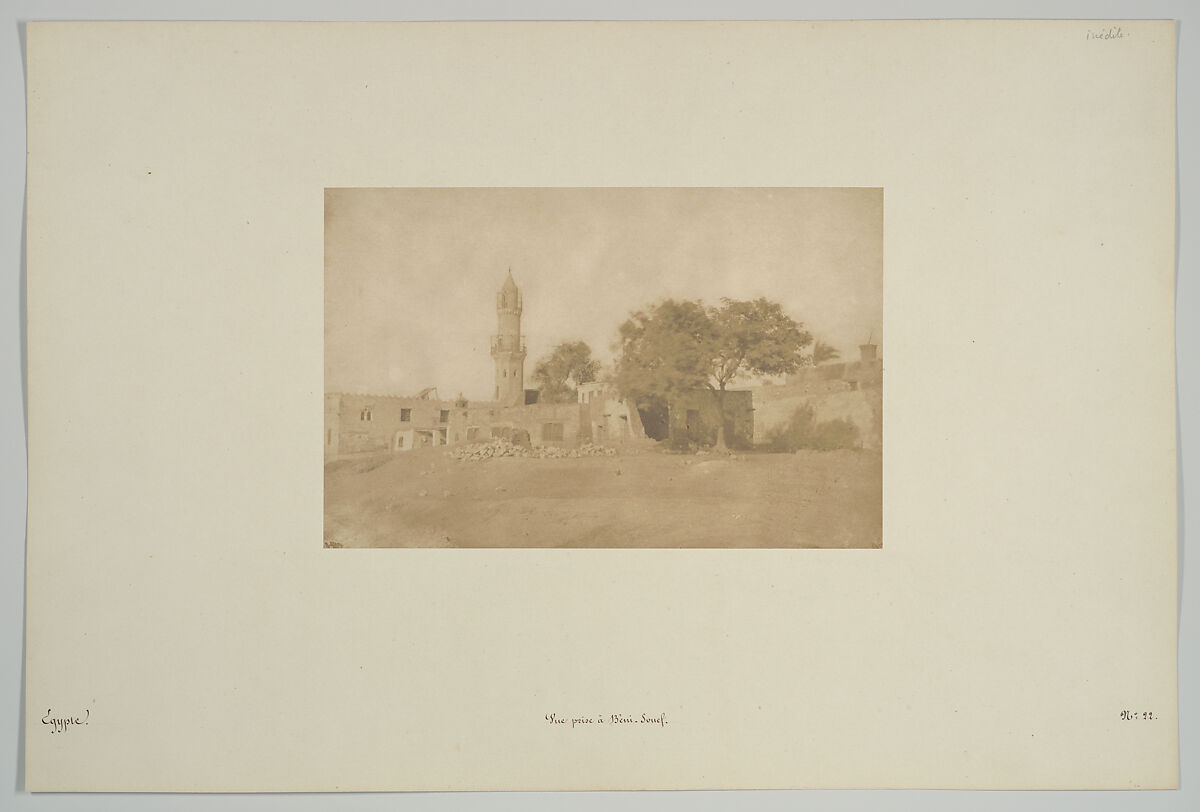Maxime Du Camp's mission to Egypt and the Near East in 1849-51 to make a photographic survey of monuments and sites is well documented in his writings and in those of his fellow traveler, Gustave Flaubert. After an initial stay in Cairo, the two friends hired a boat to take them up the Nile as far as the second cataract, after which they descended the river at leisure, exploring the archaeological sites along its banks. In July 1850 they left Egypt for Palestine, Turkey, and Greece before they parted in Italy the following April. Du Camp's album "Egypte, Nubie, Palestine et Syrie," published in 1852 and containing 125 photographs printed by Blanquart-Evrard, brought its author instant fame. In addition to the published edition, Du Camp arranged for a private printing of a few portfolios, such as the one in the Gilman collection, which numbers 174 images particularly noteworthy for their warm color and luminescence. Possibly printed in Gustave Le Gray's studio, the present portfolio is