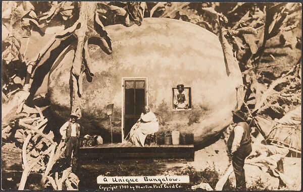 The tall-tale postcard was a uniquely American genre that flourished in the Midwest between about 1908 and 1915. The earliest master of the genre was William H. “Dad” Martin, a studio photographer in Kansas who established a successful sideline crafting photomontages of outlandish agricultural abundance. Intimately familiar with the tribulations of Midwestern farmers, including a fierce drought that parched the land for most of the 1890s, Martin lampooned the inflated promises of fertile soil, abundant rain, and hardy livestock that land companies used to lure settlers westward.