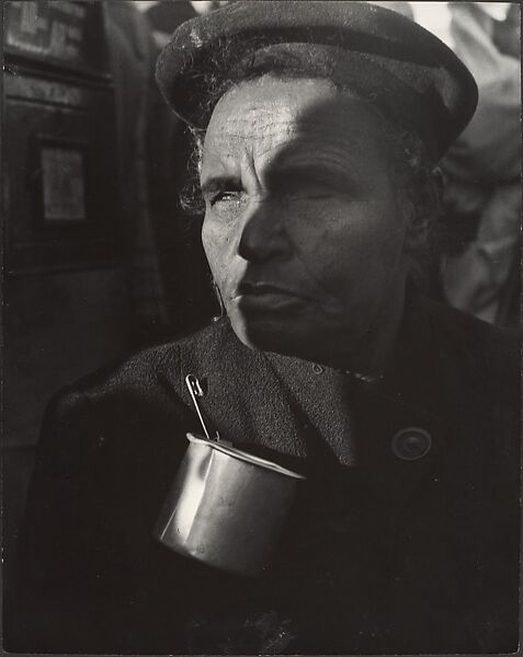 - Title: [Blind Man with Tin Cup Attached to Winter Coat, New York]