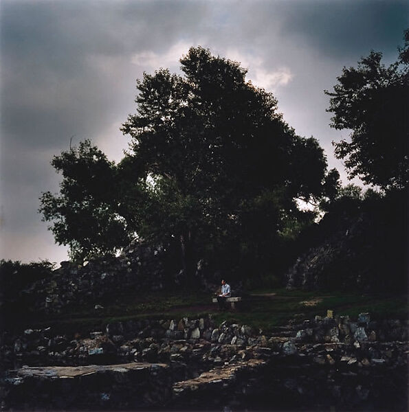 In this four-part work made over the course of two years, the artist is seated under a magnificent tree in a park in Changchun, a city in northern China. The tree changes appearence through the seasons, but the figure remains constant, motionless, meditative. Here Hai Bo played as a child, and here his brother accidentally drowned. A palpable sense of loneliness and sorrow pervades the photographs in their forlorn palette, their record of time's passage, and their image of profound contemplation as the artist searches for meaning in nature at a spot marked by the spiritual presence of his lost brother.
