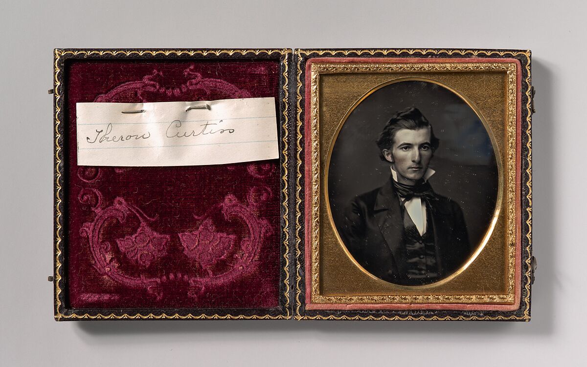 The daguerreotype, the first photographic process, was invented by Louis-Jacques-Mandé Daguerre (French, 1787–1851) and spread rapidly around the world after its presentation to the public in Paris in 1839. Exposed in a camera obscura and developed in mercury vapors, each highly polished silvered copper plate is a unique photograph that, when viewed in proper light, exhibits extraordinary detail and three-dimensionality. The daguerreotype soon became extremely popular in the United States, where in the 1840s and 1850s thousands of daguerreotypists vied for clients from Boston and New York to San Francisco. The new medium’s success here was built upon the patronage of the average citizen who desired a simple likeness to keep or, perhaps, to send to a loved one in the era’s most enduring pledge of friendship.