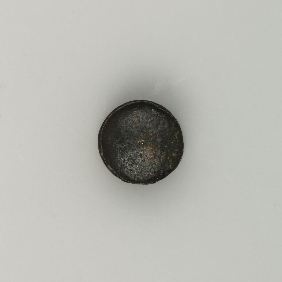 This small button originally adorned a piece of leather, possibly part of a horse tack.