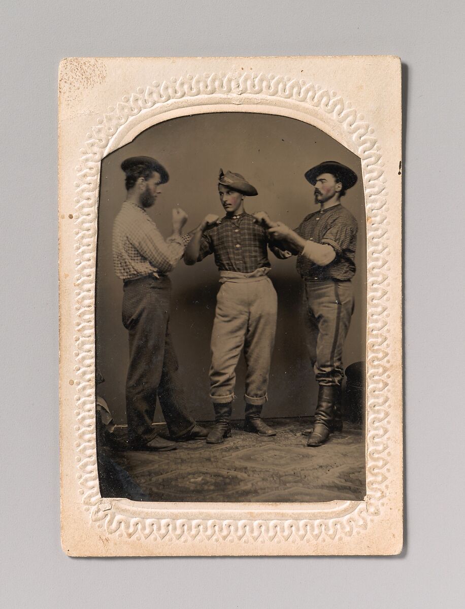 - Title: [Two Men in Boxing Stance, a Third Man Adjusting One Man's Form]