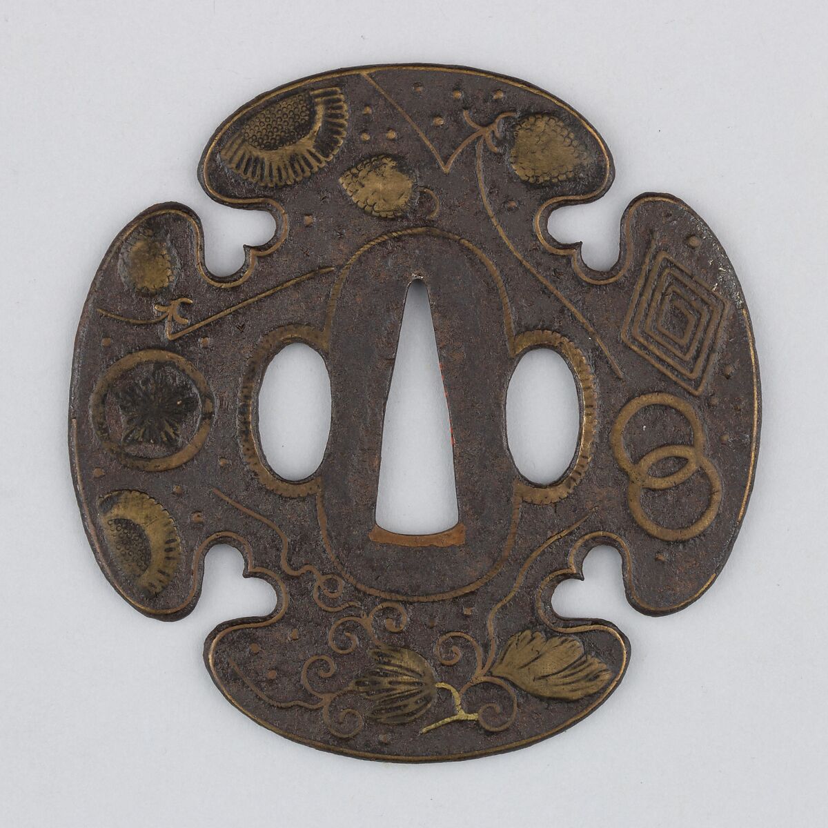 A tsuba is a sword guard and part of a sword mounting. It is mounted between the sword’s blade and grip to protect the user’s hands.