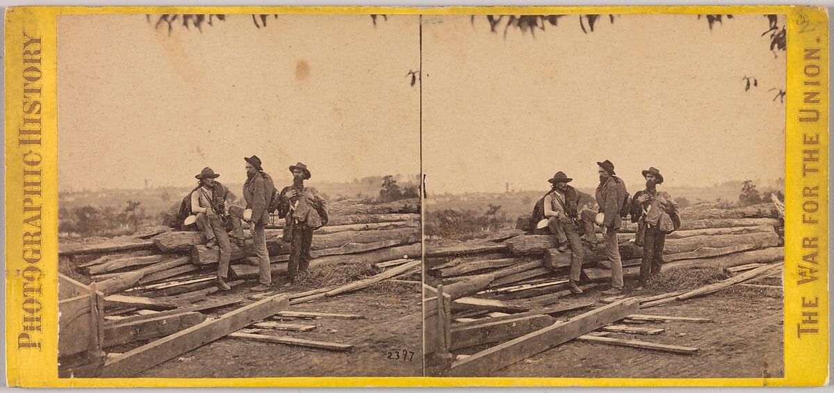Mathew B. Brady and his team of field operatives came across this trio of Confederate prisoners on Seminary Ridge two weeks after the Battle of Gettysburg. Beautifully posed by the photographers, it offers a rare glimpse of captured Confederates, possibly spies, on their way to a Union prison.