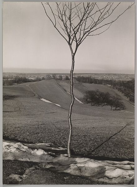 animals, landscapes, and industrial subjects, he believed that photography’s chief value lay in its ability to render with absolute precision the texture and detail of physical objects. Critics praised the “absolute realism” of his photography, particularly its capacity to reveal “nature more intensely than nature reveals herself.” This quiet study of a sapling outlined against a landscape with melting snow is one of Renger-Patzsch’s most celebrated images—a harbinger of regeneration and a stunning example of photography’s crystalline power of description.