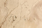 In 2011 the French photographer Frederic Brenner invited eleven prominent photographers to spend six months in residence in Israel and the Occupied Territories, or West Bank, to explore the area’s complexity and to create bodies of work that might broaden and reframe the conversation about the region. Among those invited was Sheikh, an artist best known for his sensitive black-and-white portraits of people living in displaced and marginalized communities around the world. Sheikh’s project takes the form of a trilogy titled Erasure, of which Desert Bloom is the central part. The images were made during several months of flying above the Negev desert and are intended to articulate the rapid transformation of the region. On the one hand, they invoke the Israeli endeavor to “make the desert bloom,” and on the other, they reveal traces of the Negev’s history: the construction of towns for the Bedouin, the natural erosion of the land, the demolition of local dwellings, the remains of military installations, the afforestation campaigns of the Jewish National Fund (JNF), and the transformation of nomadic desert regions into farmland.