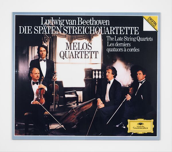 In 1985, while participating in a group show in Stuttgart, Clegg & Guttmann approached the Melos Quartet about making its portrait. The musicians asked the artists’ permission to use the portrait on the cover of their Deutsche Grammophon recording of Beethoven’s late string quartets. Clegg & Guttmann agreed on the condition that they, in turn, be allowed to make a new series of works using the label’s design incorporating their photograph.
