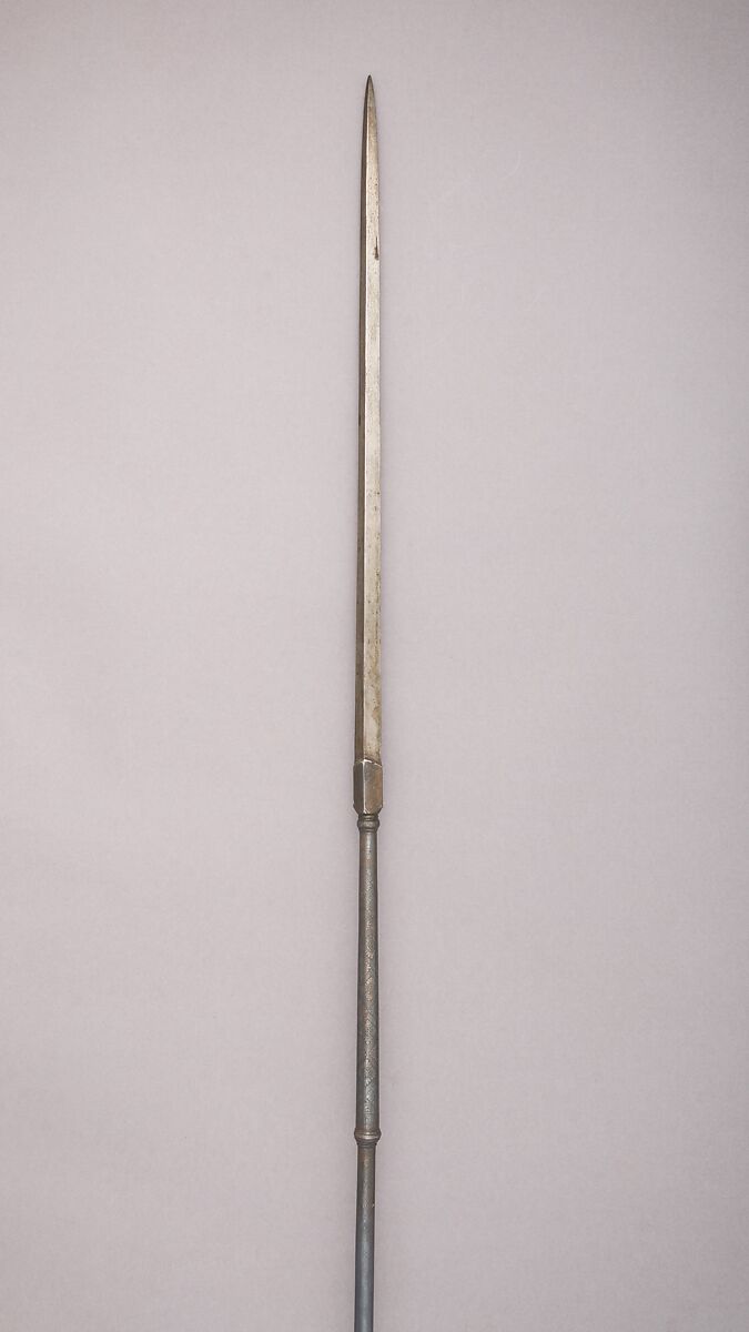 - Dimensions: L. 86 13/16 in. (220.5 cm); L. of head 19 13/16 in. (50.3 cm); W. 3/4 in. (1.9 cm); Wt. 4 lbs. 13.3 oz. (2191.4 g); head and upper shaft (a); L. 27 3/4 in. (70.5 cm); shaft (b); L. 38 9/16 in. (97.9 cm); shoe (c); L. 20 1/2 in. (52.1 cm)