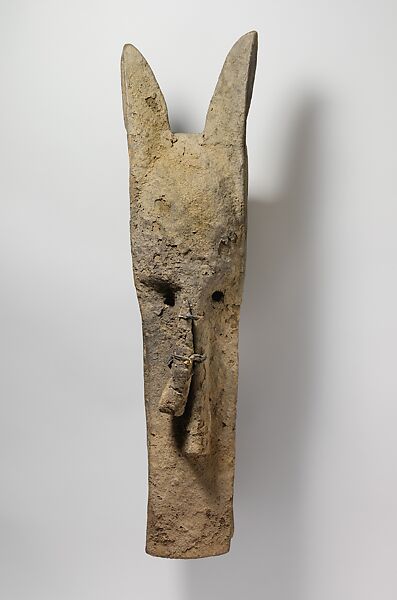 Kòmò and kònò associations construct helmet masks that express the organizations' power through their awesome and terrifying appearances. The two institutions extend across the western areas of West Africa and are among the most revered power associations in the region. Each organization fosters a unique body of knowledge, kept secret from men who are not members and most women. Members use their knowledge to counteract malevolence and manage complex social, psychological, and medical problems. The creation of this work combined the efforts of a professional sculptor to produce the structure with the knowledge of a kònò leader to add complementary esoteric materials to its surface.