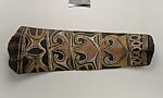 This panel is one of over 270 original paintings commissioned from Kwoma artists in the village of Mariwai in 1970 and 1973 by Douglas Newton, the first curator of Oceanic art in the Department of the Arts of Africa, Oceania and the Americas. Once completed, they were shipped to New York and installed in the galleries. In 2007, when the Oceania galleries at the Metropolitan Museum were renovated, the panels were attached to a new superstructure. Although less steeply pitched than the Kwoma houses found in villages today, the installation evokes the essential form of a ceremonial house ceiling. Together these suspended panels form an impressive and spectacular installation in the Metropolitan Museum which, at 80.4 feet (24.5 meters) end-to-end, is the largest contemporary art installation in the museum.
