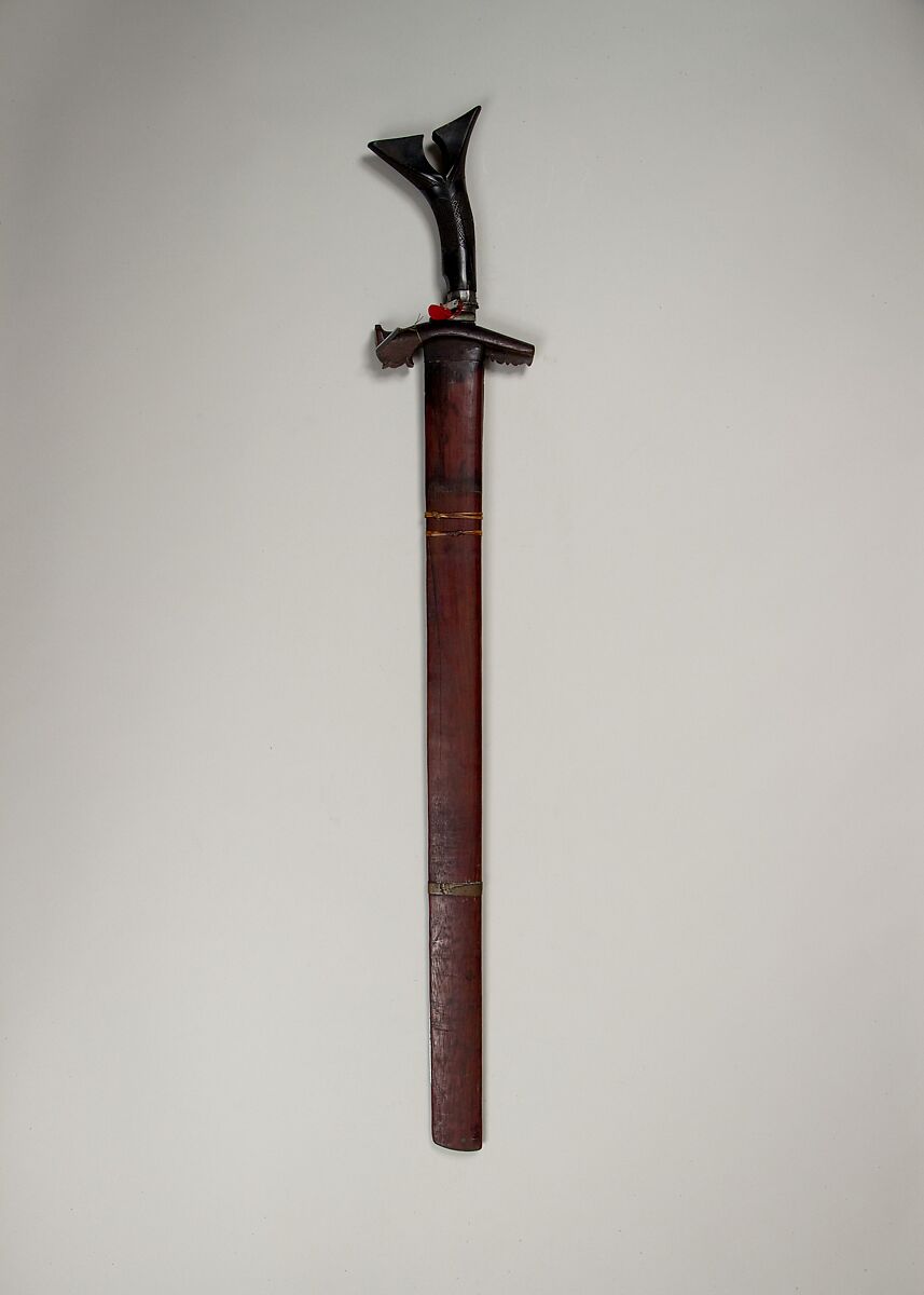 - Dimensions: L. with scabbard 33 1/4 in. (84.5 cm); L. without scabbard 32 1/2 in. (82.6 cm); L. of blade 26 in. (66 cm); W. 3 5/8 in. (9.2 cm); Wt. 1 lb. 8.8 oz. (703.1 g); Wt. of scabbard 8.6 oz. (243.8 g)