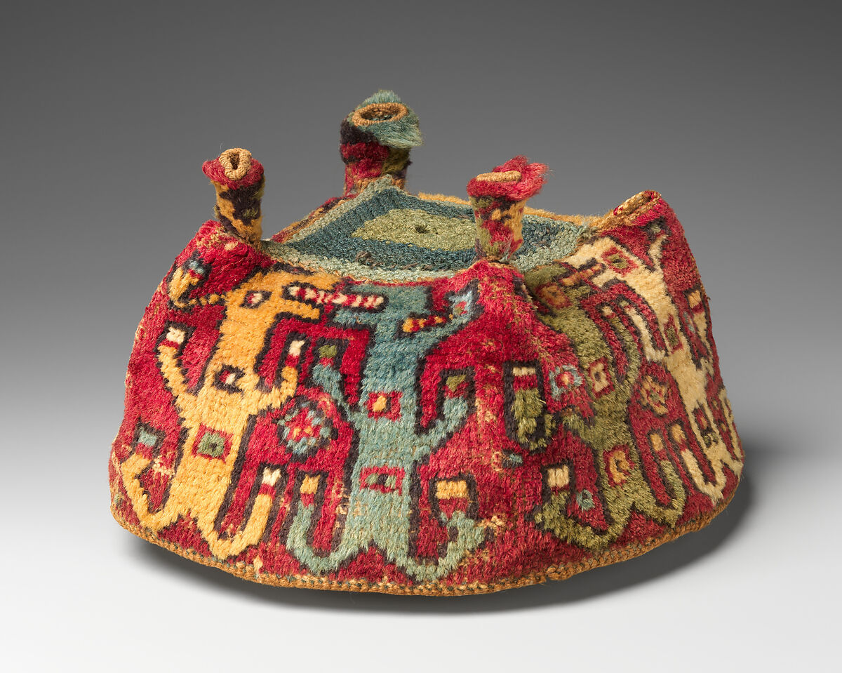 Finely woven, brightly colored hats, customarily featuring a square crown, four sides, and four pointed tips, are most frequently associated with two ancient cultures of the Andes: the Wari and the Tiwanaku. The Wari Empire dominated the south-central highlands and the west coastal regions of what is now Peru from 500–1000 CE. The Tiwanaku occupied the altiplano (high plain) directly south of Wari-populated areas around the same time, including territory now part of the modern country of Bolivia. The cultures not only developed and flourished as contemporaries, but also occupied adjacent lands for nearly four centuries. A Wari ceremonial center called Cerro Baúl was located a mere five miles from Tiwanaku-settled fields in the Moquegua Valley of Peru. The two cultures likely encountered each other at Cerro Baúl and elsewhere, but the nature of these interactions remains largely unknown.