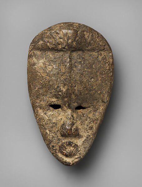 Most Dan face masks genre, and those of the culturally related groups of Côte d’Ivoire and Liberia, are commonly executed in a miniature form, ranging in height between 6 and 20 centimeters. Even the largest miniatures are too small to be worn in front of the face, and they rarely exhibit any means by which they may be attached to anything. The most common mask type represented in such diminutive form is deangle (attractive mask with slit eyes, performs a feminine behavior) while the least common miniature forms are masks with tubular eyes and animal mouths.