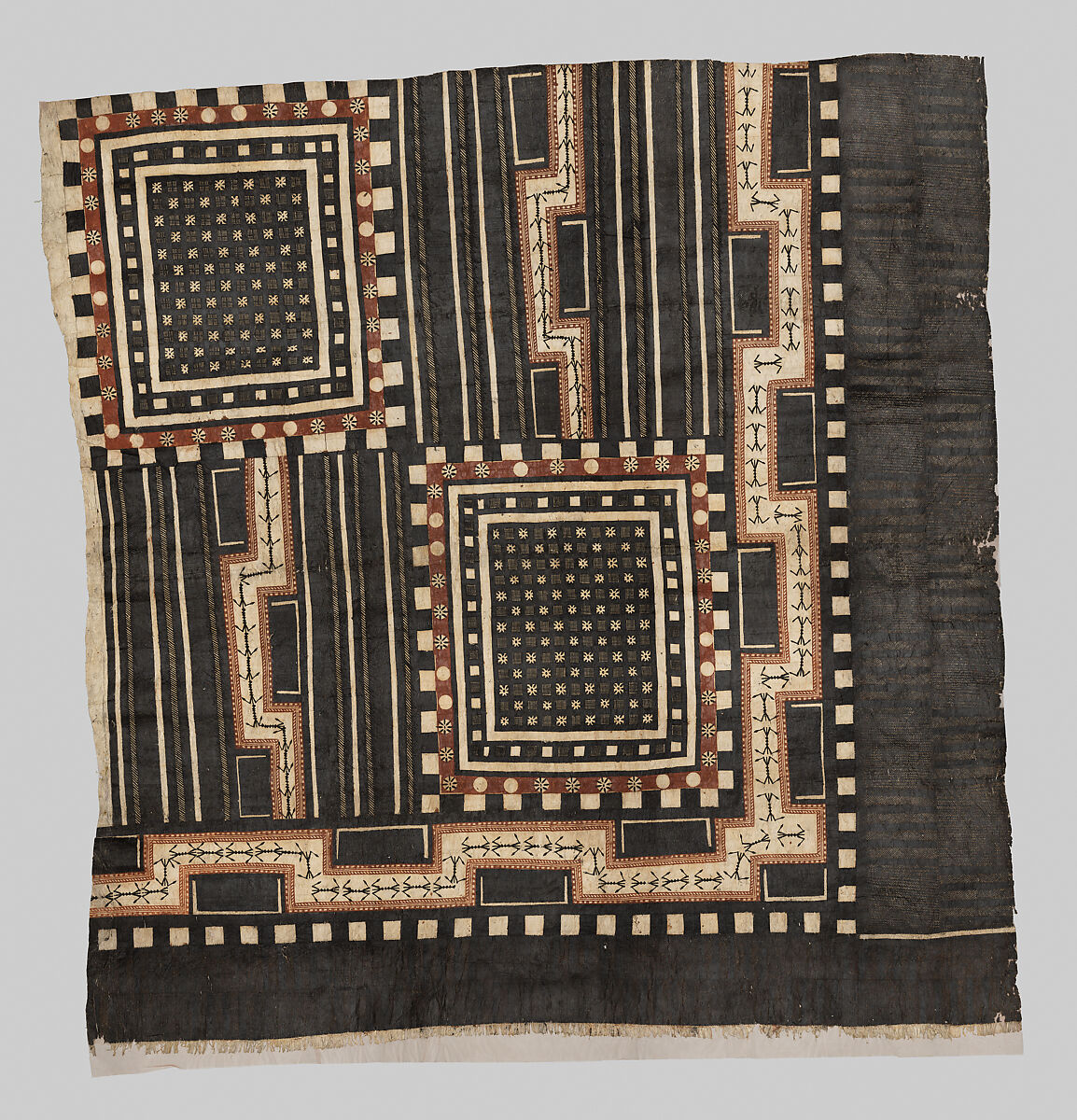 Fijian artists both past and present have created diverse forms of barkcloth, a paperlike textile typically manufactured from the inner bark of the paper mulberry tree. Decorated barkcloths, such as the present work, are known collectively as masi kesa. In decorating barkcloth, Fijians probably employ a greater variety of techniques than any other Pacific people. The bold rectilinear patterns on the present work were produced through the use of stencils, a technique that is unique to Fiji.