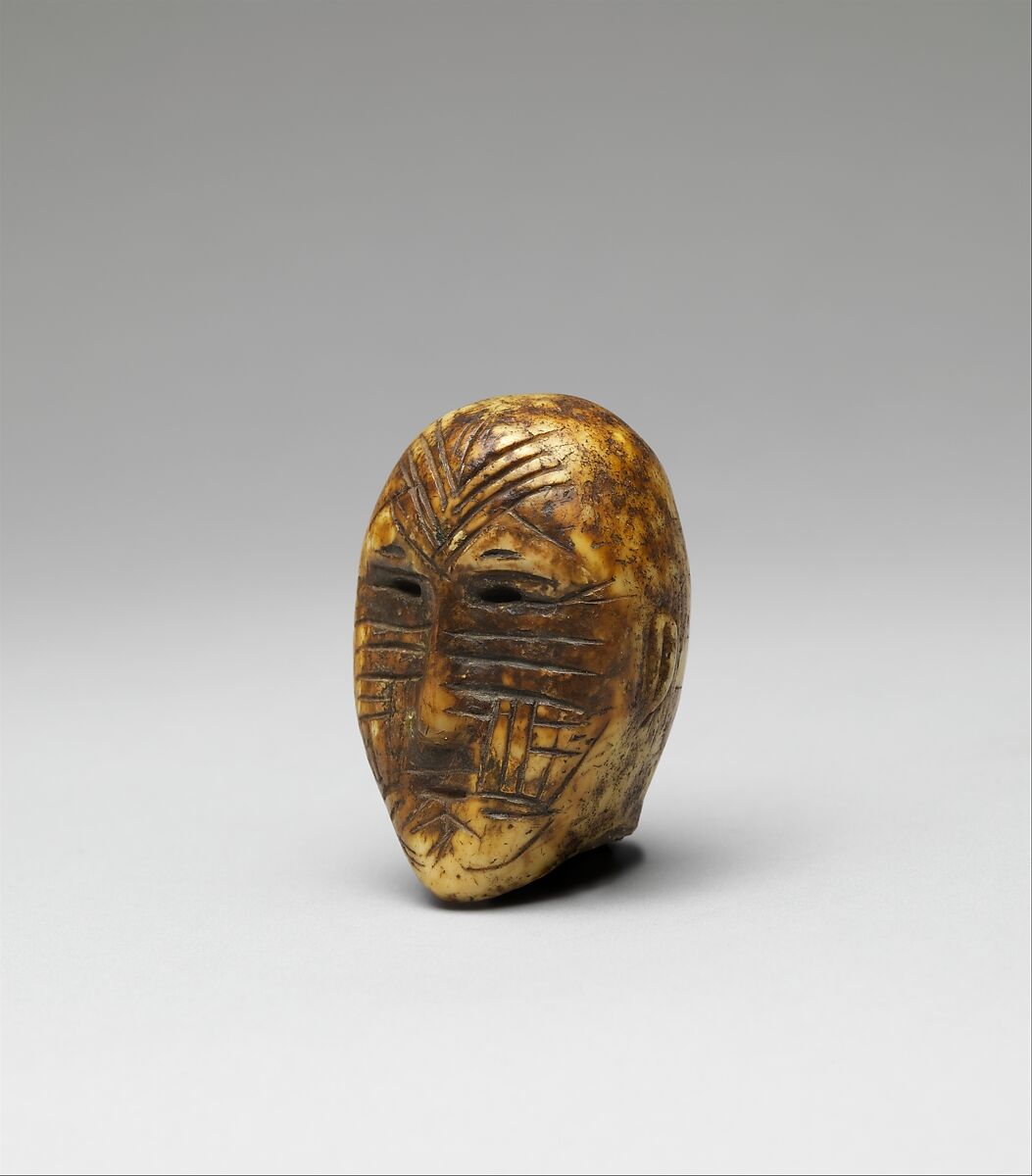 In the last two millennia before the Common Era, the peoples who established themselves along the rim of the North Pacific Ocean between Asia and America were dependent for their livelihood to a great extent on the resources of the sea. Walrus, seal, and whale were significant to subsistence, and all were hunted. On the American side, the Bering Sea Eskimo were careful to decorate the ivory and wood tools with which they hunted. The beautifully balanced and elegantly incised objects were functional tools that were incised with spirit images and designs that honored the animals the hunters sought. Harpoon heads and foreshafts, and the socket pieces known as winged objects are salient examples. Also carved of walrus ivory were human figures, most frequently female. The purpose to which the enigmatic but equally elegant figures were put is unclear. Some authorities call them dolls-originally, they may have been dressed-while others call them ceremonial objects.