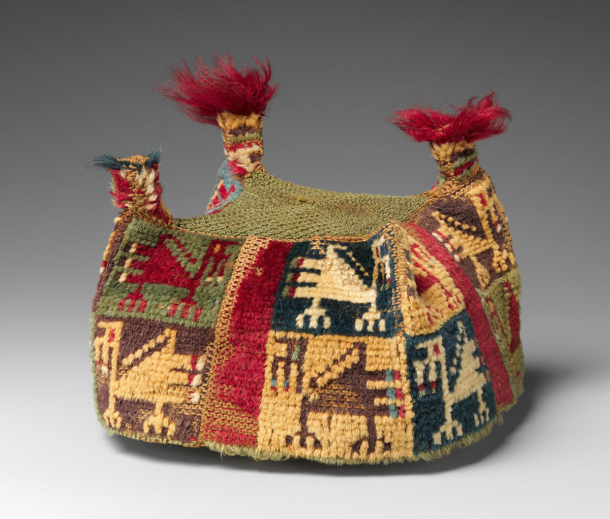 Although they shared certain technological traditions, such as complex tapestry weaving and knotting techniques, the Wari and the Tiwanaku utilized significantly different construction methods to create four-cornered hats. Wari artists typically fashioned the top and corner peaks as separate parts and later assembled them together. Tiwanaku artists generally knotted from the top down, starting with the top and four peaks, to create a single piece. In addition, four-cornered hats knotted with pile have largely been discovered at Wari sites, while those knotted without pile have been found in Tiwanaku burials. Through these variances, scholars have been able to attribute individual works to one group or the other.