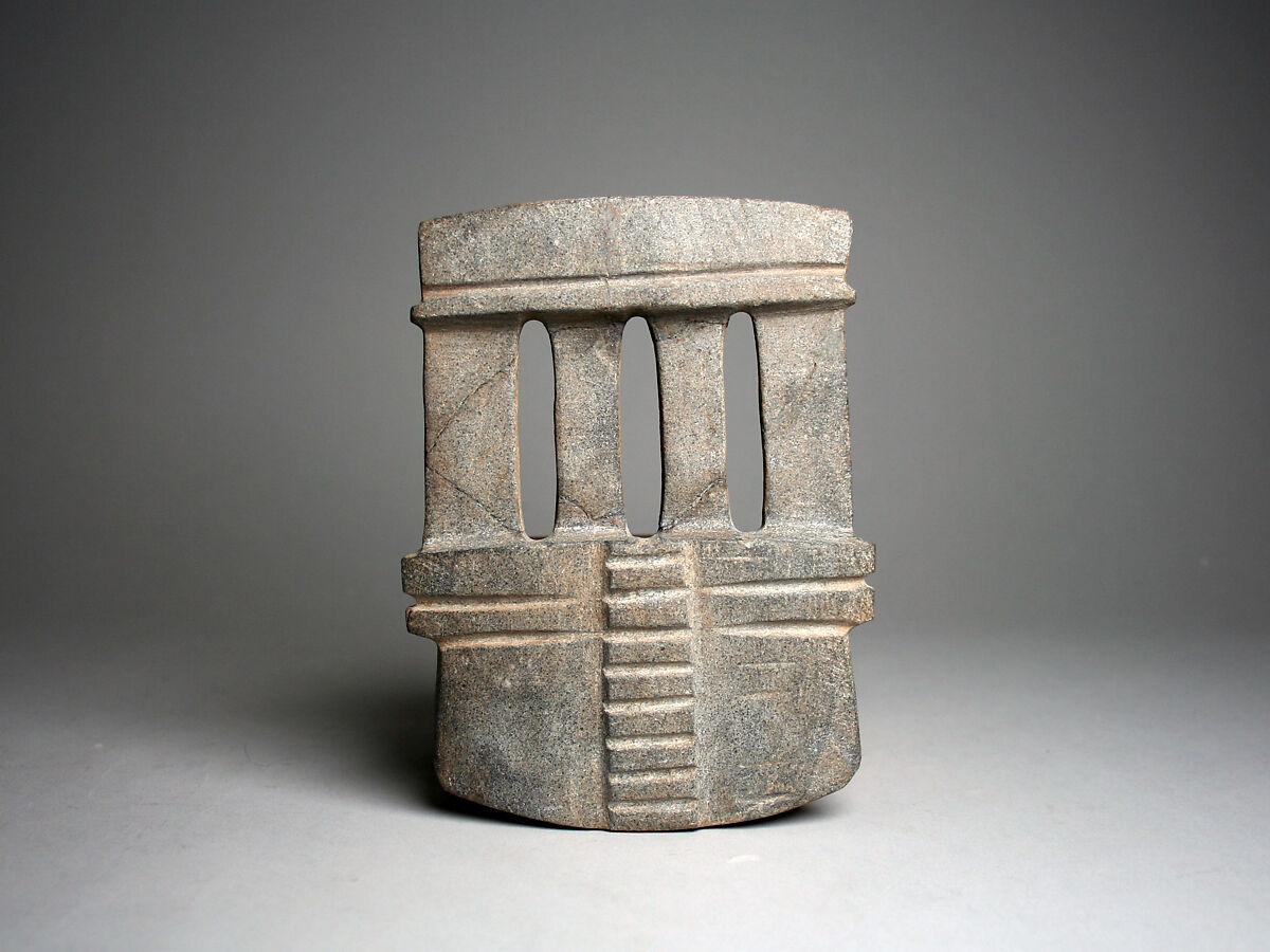Stone architectural models in the Mezcala style primarily come from the present-day state of Guerrero in southwest Mexico. A particularly long-lived tradition, these works may have been produced over some one thousand years, beginning as early as 500 BCE. Little is known about their archaeological contexts, and there are few points of reference with surviving architecture in the region. It is possible that models with pillars reference buildings with stone columns, such as those from Cuetlajuchitlán.