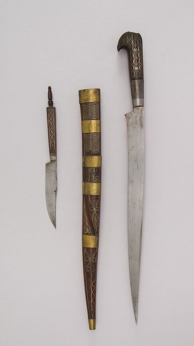 - Dimensions: H. with sheath 18 1/4 in. (46.4 cm); H. without sheath 17 5/16 in. (44 cm); H. of blade 13 in. (33 cm); W. 1 1/2 in. (3.8 cm); Wt. 11.9 oz. (337.4 g); Wt. of sheath 2.8 oz. (79.4 g); small knife (c); L. 8 5/8 in. (21.9 cm); L. of blade 4 1/8 in. (10.5 cm); W. 5/8 in. (1.6 cm); Wt. 1.1 oz. (31.2 cm)