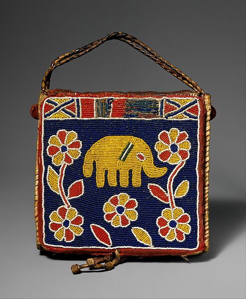 - Medium: Leather, glass beads, cotton cloth and thread, velvet