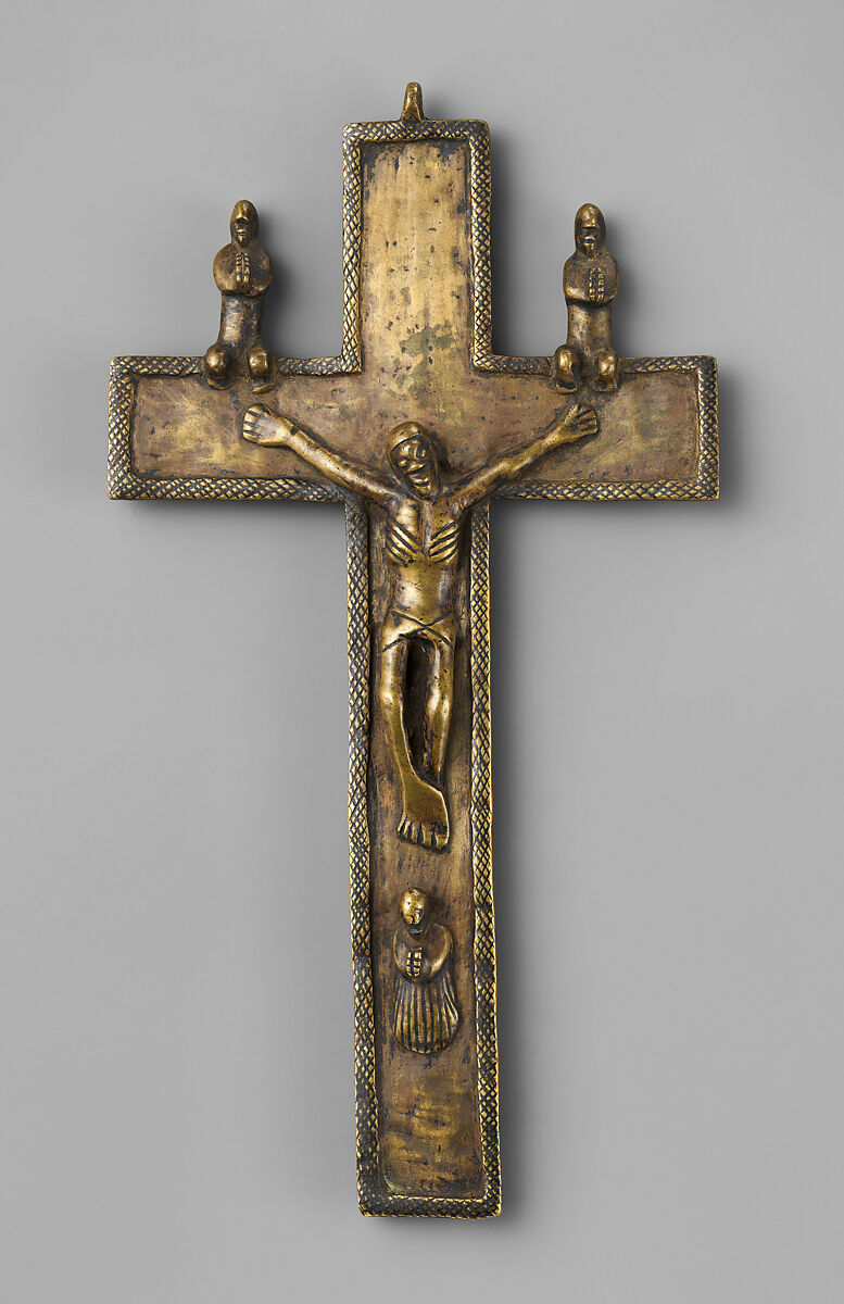This Kongo cross, like earlier related works, is based on European prototypes. Earlier Kongo renditions of this subject depict Christ with naturalistically modeled arms, legs, and torso that emphasize musculature. Additionally, his face is rendered in the throes of an arduous death. However, later examples of this style suggest a more profound assimilation of the cross with local idioms.