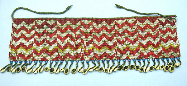 - Medium: Glass beads, cotton yarn, cowrie shells, metal (?)