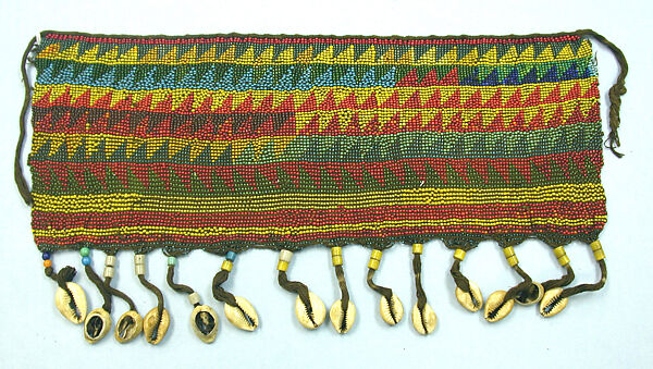 - Medium: Glass beads, cotton yarn, cowrie shells, metal (?)