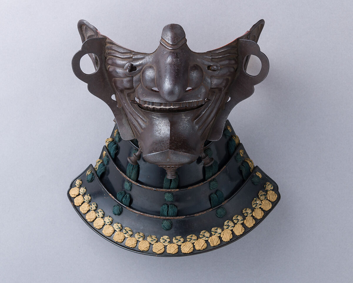 Masks have long played an important role in Japanese culture: in religious ceremonies, dance, Noh theater, and military costume. For samurai, masks served as a principal face defense and helped secure the helmet to the head more firmly.