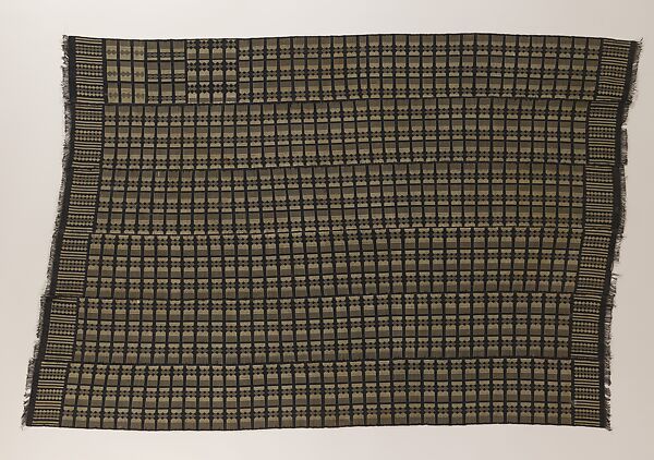 While several distinct cultural traditions from Senegal are known for their textiles creations, those woven for Manjaka communities remain the most sought after. They are an essential component of each important phase in the life of Senegalese women. Distinctive for their thick and stiff qualities, such textiles are conceived by their wearers as protective shields. They are commonly ornamented by motifs that recall the many external influences that impacted the Manjaka communities through trade, colonial history and displacements: Portuguese, Moroccan and Spanish. This textile's striking graphic composition draws upon a single popular motif, that of a comb.